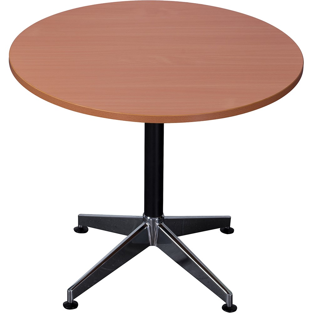 The Typhoon meeting table has a black stem and polished aluminium stable 4 star base. Adjustable feet. With E0 safety standard rated melamine board. 5 Year Manufacturer's Warranty.