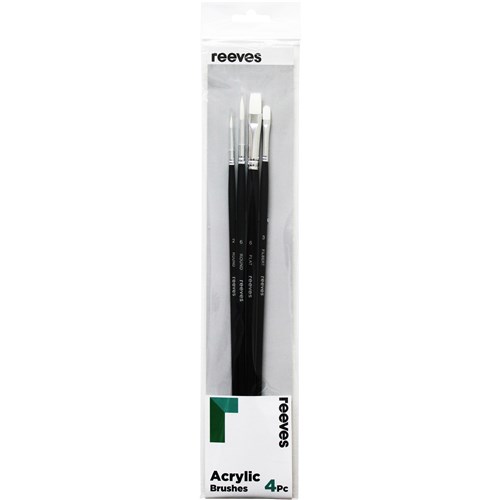 • Reeves Acrylic Brushes Long Handle Set Of 4