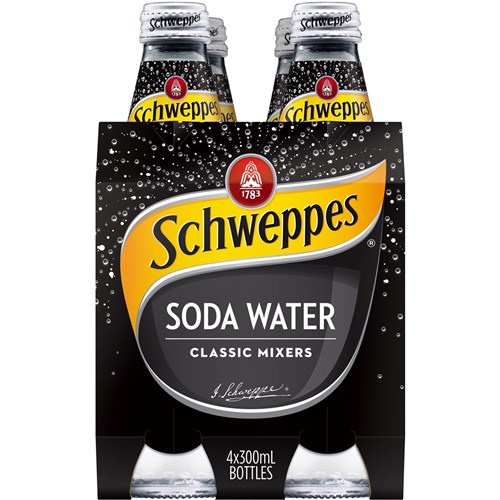 • Schweppes Soda Water Classic Mixers 300ml Glass Bottle Pack Of 24