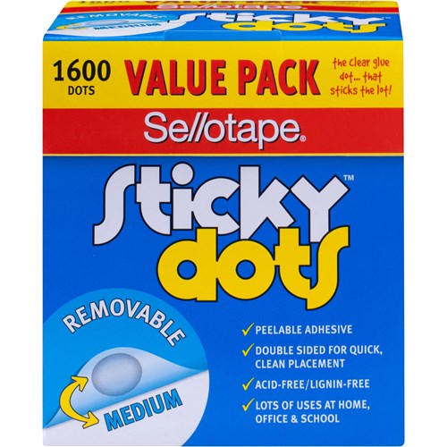 Sellotape Sticky Dots Value Pack 10mm Permanent Adhesive Clear Pack of 1600 683331 In Stock Low Stock Low Stock Please See Attributes