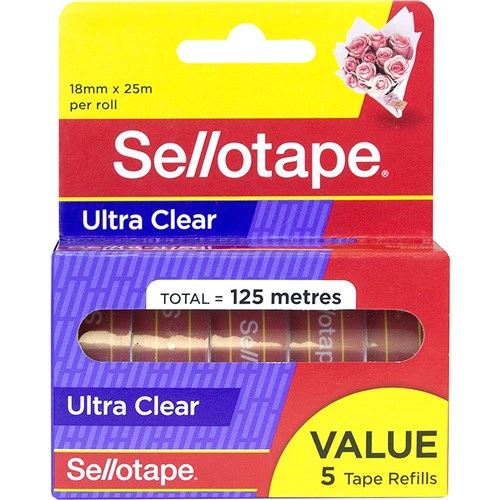 Sellotape Ultra Clear Tape 18mm x 25m Pack of 5