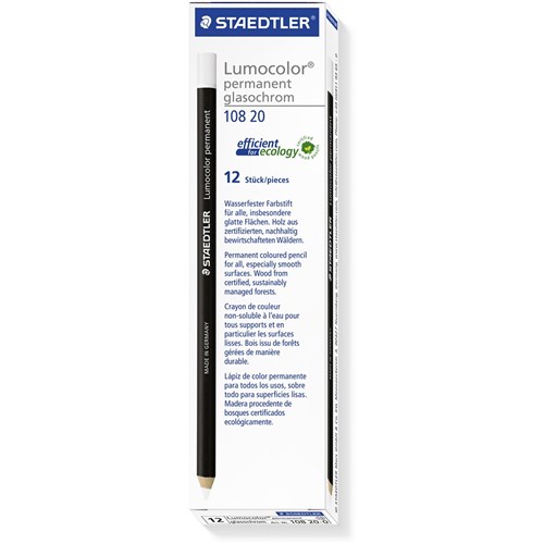Staedtler 108 Lumocolor Glasochrom Permanent Pencil White 522612 In Stock Low Stock Low Stock Please See Attributes