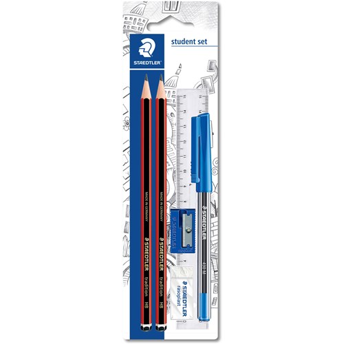 • Staedtler 110 Tradition Student Set 2 HB Pencils, Eraser. Pen, Ruler & Sharpener