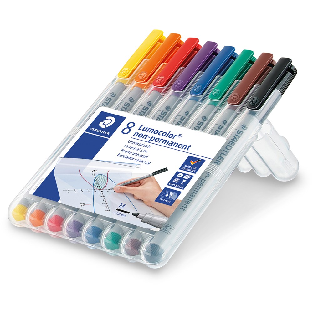• Staedtler 315 Lumocolor Pens Non-Permanent Medium 1mm Wallet of 8