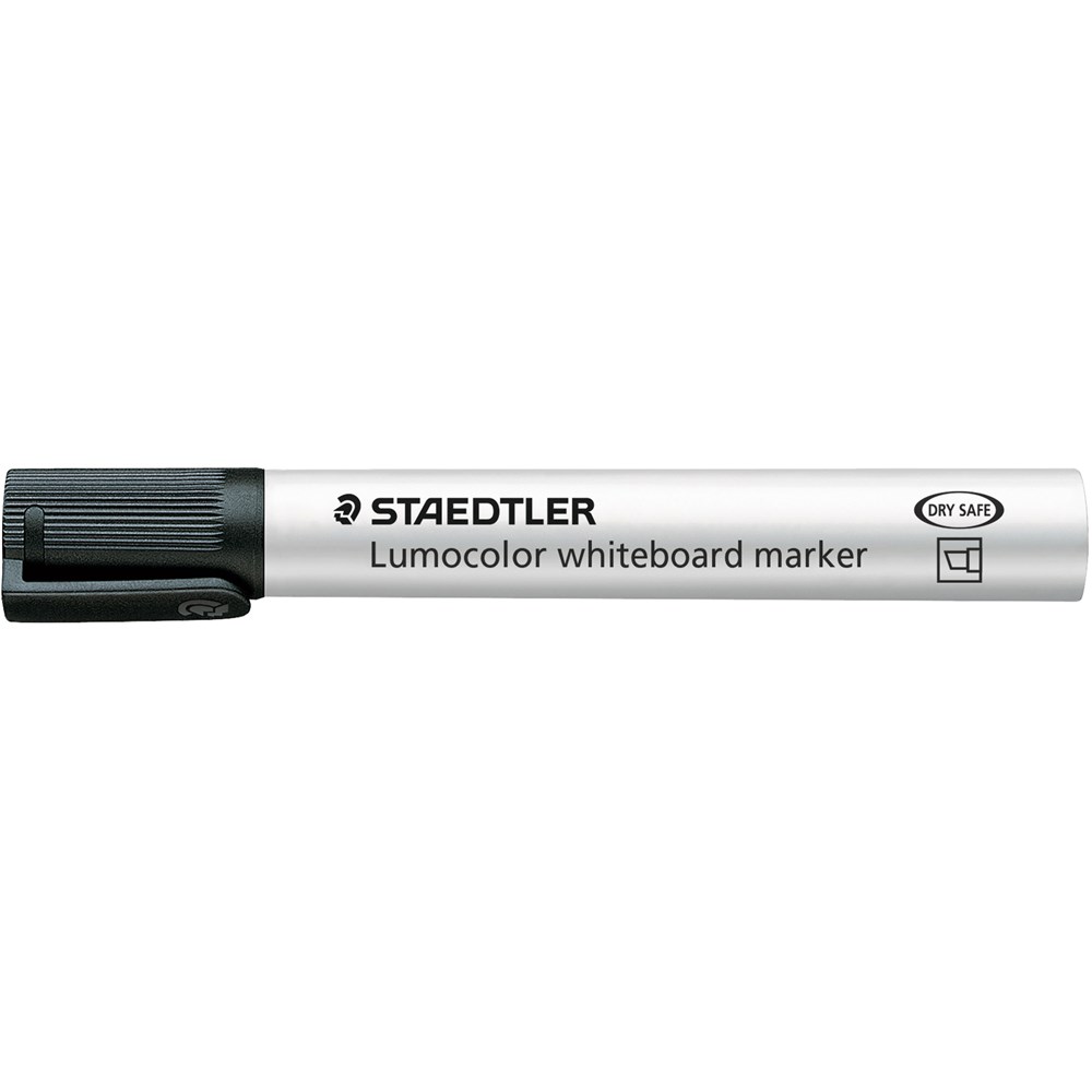 Black marker can be dry-wiped from whiteboards and surfaces such as glass and porcelain without leaving a trace Airplane-safe Fast drying, low odour and with convenient clip cap Dry safe Stand-up staedtler box converts to convenient desk set Refillable xylene and toluene free ink Polypropylene barrel and cap guarantee long service life Chisel tip line width approximately 2 - 5mm