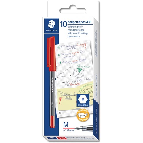 • Staedtler 430 Stick Ballpoint Pen Medium 1mm Red