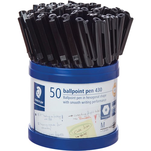 • Staedtler 430 Stick Ballpoint Pens Medium 1mm Black Cup of 50