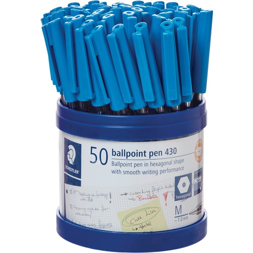 • Staedtler 430 Stick Ballpoint Pens Medium 1mm Blue Cup of 50