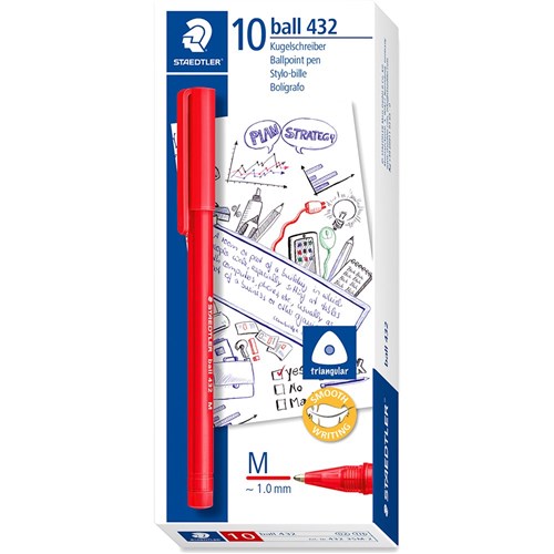 Staedtler 432 Stick Triangular Ballpoint Pen Medium 1.0mm Red Box of 10