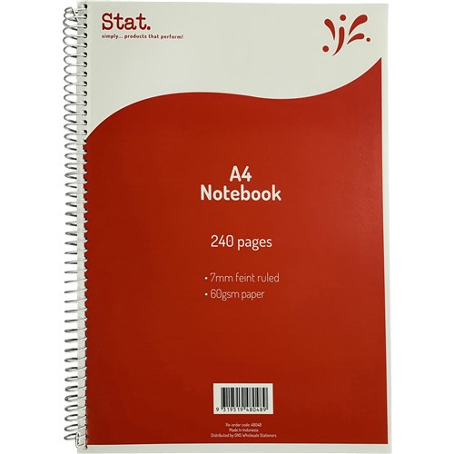 Stat Notebook Spiral A4 7mm Ruled 60gsm 240 Page Red