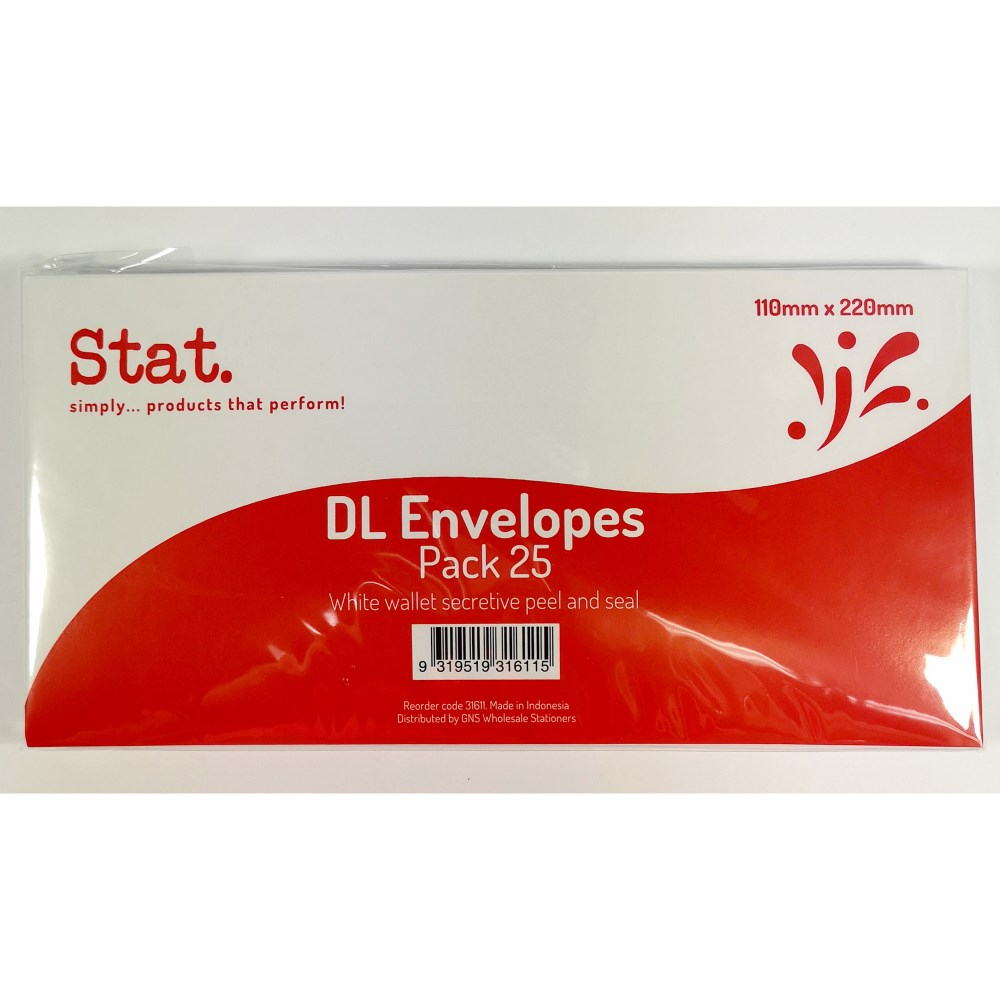 Stat Peel And Seal Envelope DL Secretive White Pack of 100 2337578 In Stock Low Stock Low Stock Please See Attributes