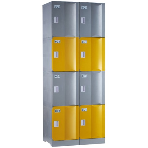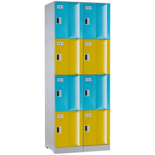 • Steelco ABS Plastic Locker 4 Door Bank Of 2 760W x 500D x 1940mmH Assorted Colours
