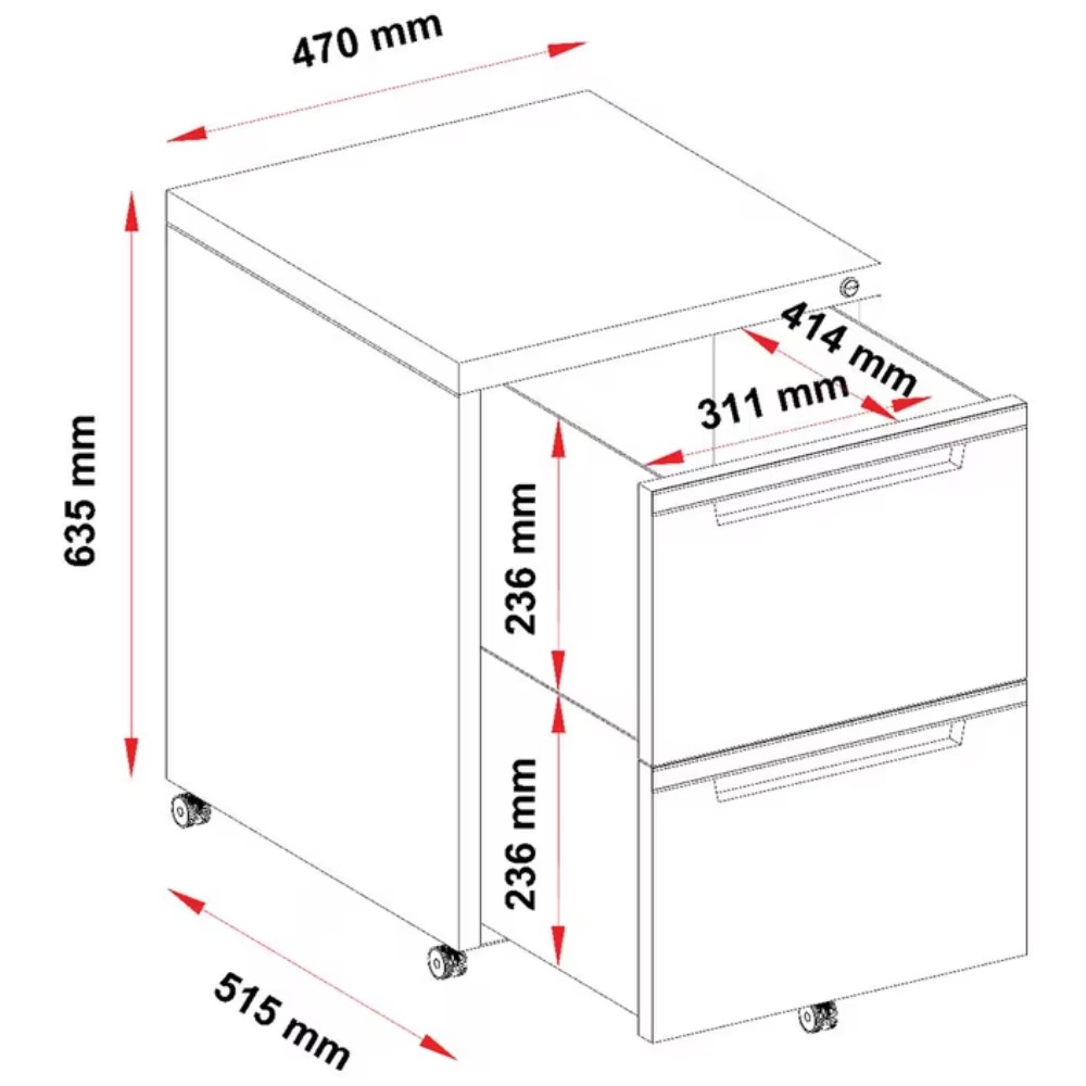 Steelco Classic Mobile Pedestal 2 File 470W x 515D x 630mmH Graphite
