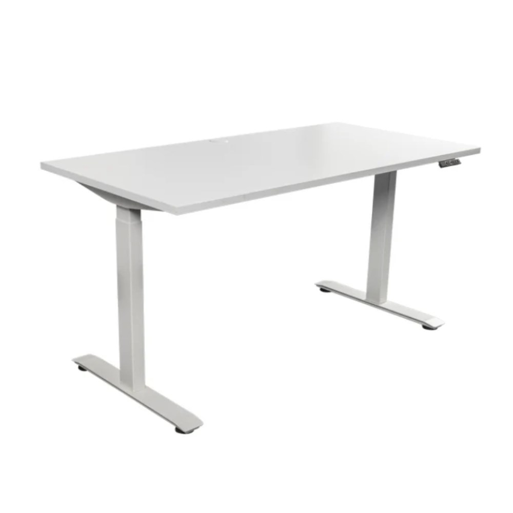 Sleek, modern European design. 25mm thick, white melamine finish worktop, with cable port. Ultra-quiet electric powered dual motor. Lift capacity - Standard 102kg. Speed 25mms. Safety - Auto reverse on both up and down movements. 2 stage rectangular leg. One touch operation with 3 programmable settings in addition to up-down. Also available with a black frame. 10 Year Manufacturer's Warranty. Delivery, installation and assembly charges may apply to furniture. Please enquire to confirm.