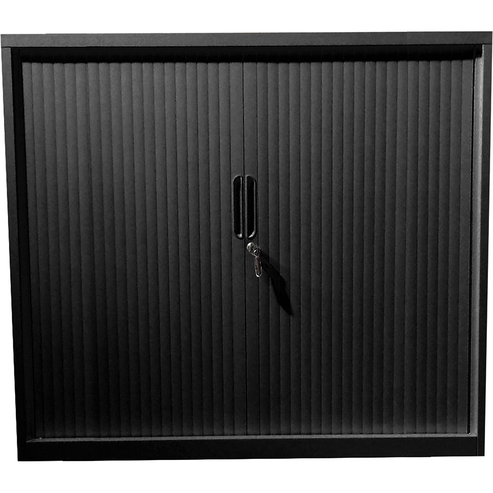 • Steelco Tambour Door Cupboard Includes 3 Shelves 1200W x 463D x 1200mmH Black Satin