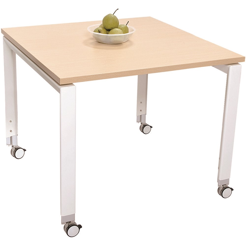 Snow Maple top and White frame. Dimensions: 900W x 900D x 620-920mmH. Designed to be as active as your office environment, the castor wheels allow you to customise your space according to your daily schedule ? be it a quick team meeting, or a permanent meeting room. Height settable legs. 10 Year Manufacturer's Warranty. Delivery, installation and assembly charges may apply to furniture. Please enquire to confirm.