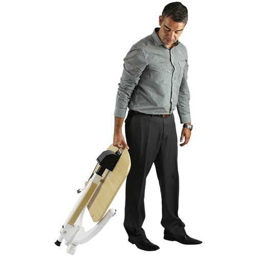 Beech top white frame. This unique sit stand desk converts from flat fold to a sitting then standing position with great ease. Allows multi function usage with multiple height settings. Perfect for all classrooms, study areas, libraries and a handy lectern. Castors allow quick movement from one area to another. 10 Year Manufacturer's Warranty. Delivery, installation and assembly charges may apply to furniture. Please enquire to confirm.