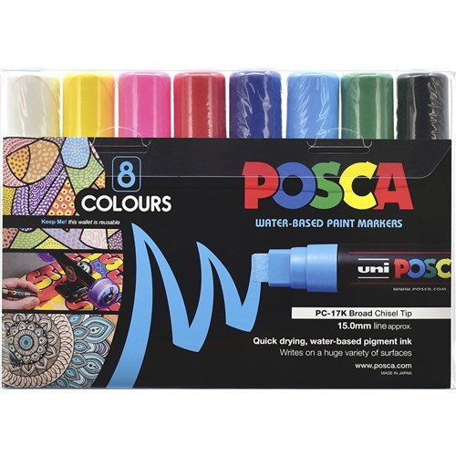 Uni Posca Paint Marker PC-17K Extra Broad 15mm Tip Assorted Set of 8