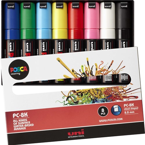 • Uni Posca PC-8K Paint Marker Broad 8mm Chisel Tip Assorted Colours Wallet Of 8