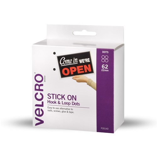 • Velcro® Brand Stick On Hook & Loop 22mm 62 Dots With Dispenser White