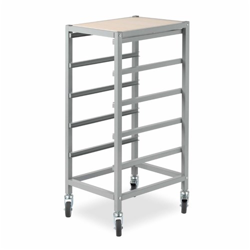 Single trolley frame only. Perfect to use with the Tote trays range. Also available as 10 and 15 bay storage unit, please see codes 2793878 and 2793879. Mix and match the tote tray colours to create a stimulating learning space. The perfect storage solution for the classroom. Constructed metal frame and mounted on lockable castors. White or oak wood laminate finish top - choose when assembling. Delivery, installation and assembly charges may apply to furniture. Please enquire to confirm.