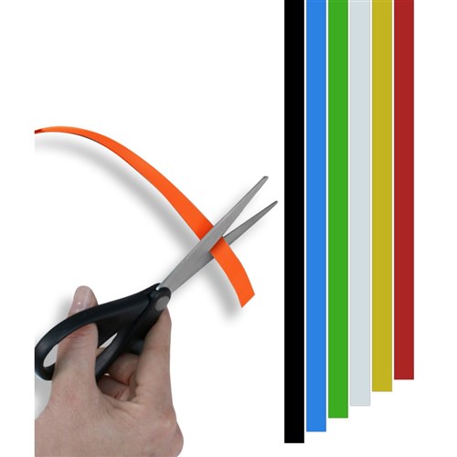 Magnetic Strips with a writable surface - the perfect blend of functionality and creativity for your whiteboards and metal surfaces. Elevate your classroom with a range of colorful magnetic solutions designed to bring a pop of color to any space. Can be cut to any shape with a sharp knife or scissors to suite your special requirements and can be written on with permanent or water based markers. Magnetic backing, writable front surface. Strips are 300mm long and are also available in widths of 10mm, 13mm and 19mm. Also available in Black, Blue, Green, White, Yellow, Red and Orange.