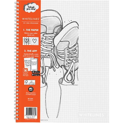 WHITELINES A6 NOTEPAD It's simple: dark lines distract, white lines don't. Whitelines brings together physical and digital notes. The clever scanner-app in combination with Whitelines paper makes it super easy to capture, save and share your notes. FSC Certified. A4 5mm squared. 120 Pages. 80GSM. Free Smartphone App