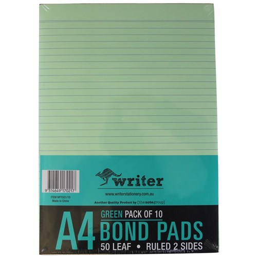 Writer A4 Premium Bond Pad 50 Sheet Ruled 2 Sides Green