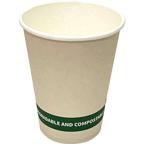Suitable for cold or hot drinks. 12oz (355mls) capacity, single-walled cups with a polylactic (PLA) bio-lining and 89mm diameter. Compostable. Made from sustainably and ethically sourced board. Ideal for the office, picnics and parties. Lids sold separately.